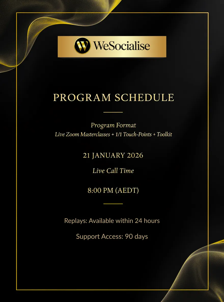 Format: Live Zoom masterclasses plus weekly touch points and complete toolkit