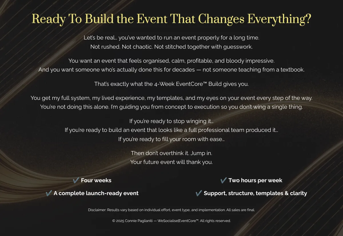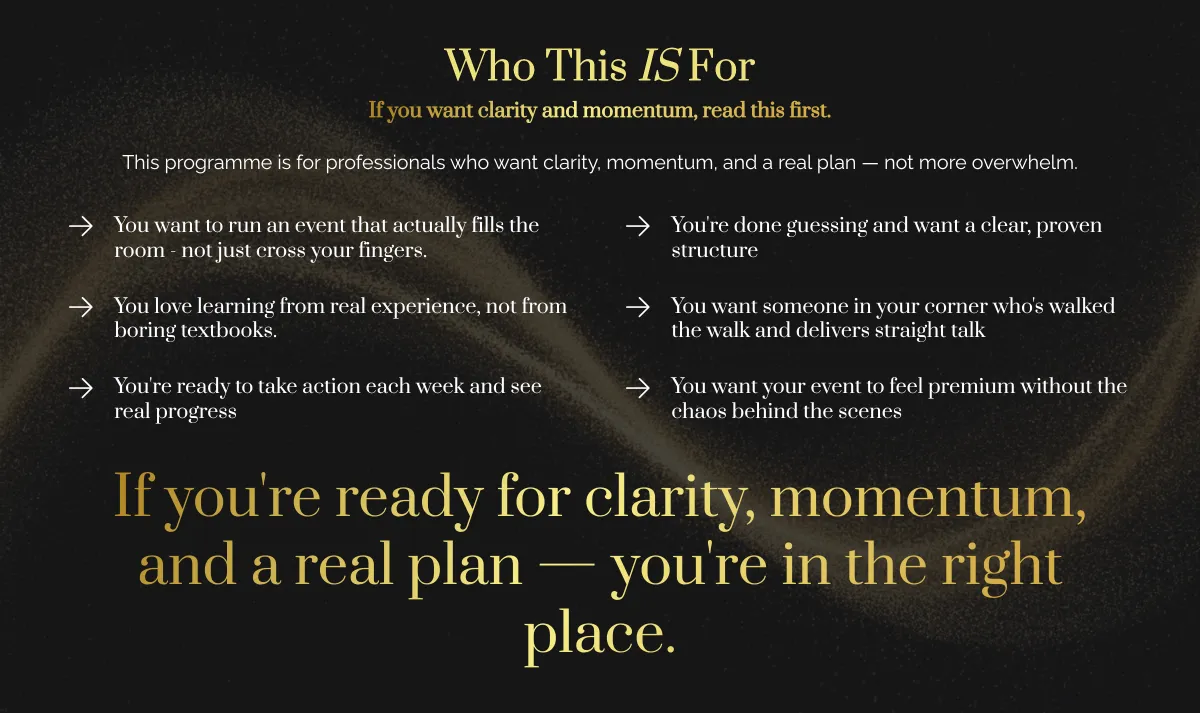 Yes. It's perfect for first-time event creators and those who have tried before and felt overwhelmed.